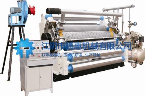 吸附式單面機采用高溫潤滑脂潤滑,方便可靠。 各導紙輥、予熱輥熱處理后,表面均經精磨并鍍硬鉻處理。預熱輥、壓力輥、瓦楞輥均符合二類壓力容器國家標準,并經專業機構驗證。